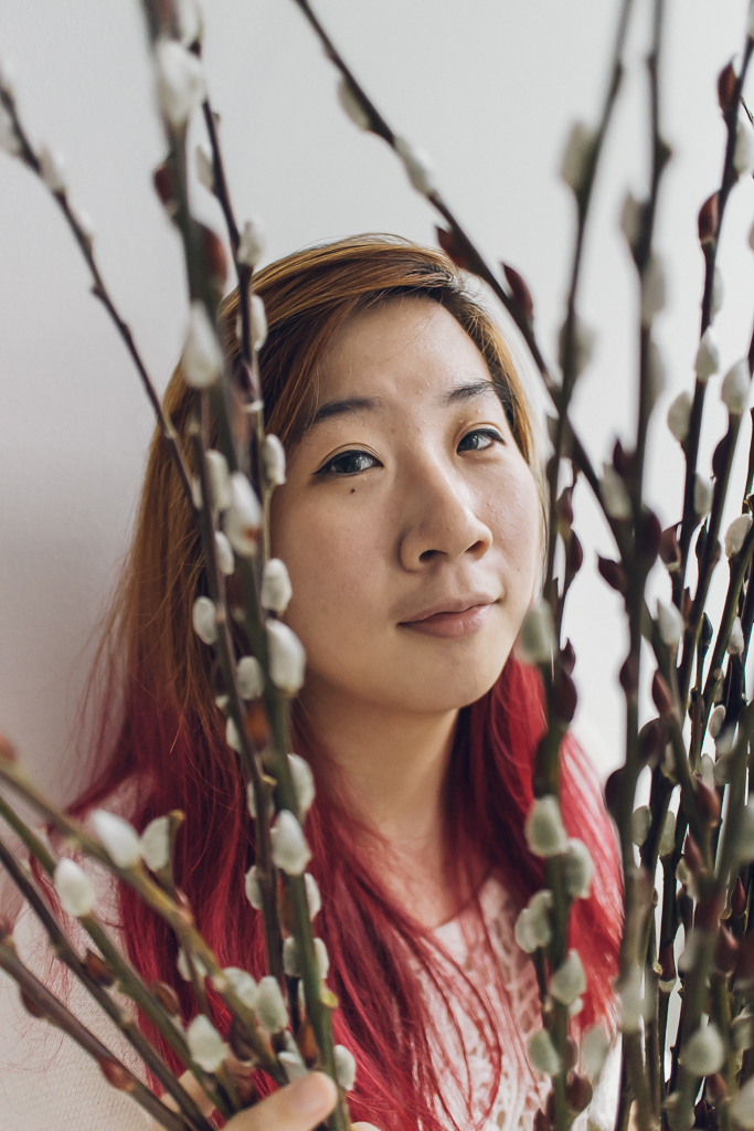 Many families decorate their homes with pussy willows, a plant that signifies the beginning of spring, during the Chinese New Year. Also known as catkins, these beautiful furry buds are not only soft to touch, but are also great for framing in your portrait shots. Direct your subject to look through its skinny branches, and make sure you get the buds on the foreground. With a shallow depth of field, the white buds will appear fuzzy and furry, which make for nice bokehs in the shot.