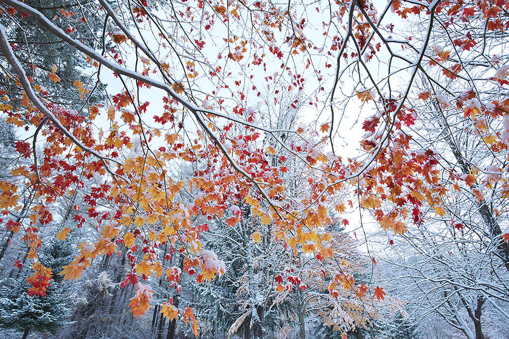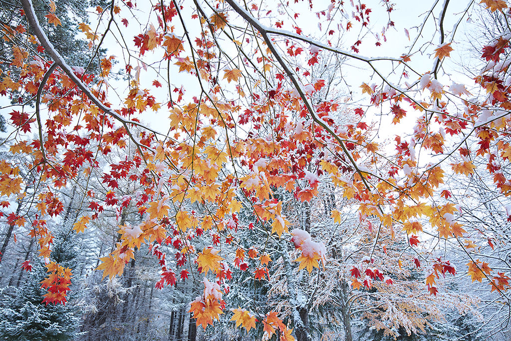This shot was taken with my usual style—distortion using the wide-angle range of a wide-angle lens to bring out a sense of space and expanse. However, due to either bad positioning or too wide an angle, the maple leaves look too far away from each other, and the photo seems to lack something as a result. It would have been better if I had paid attention to the four corners of the frame and positioned the leaves accordingly.