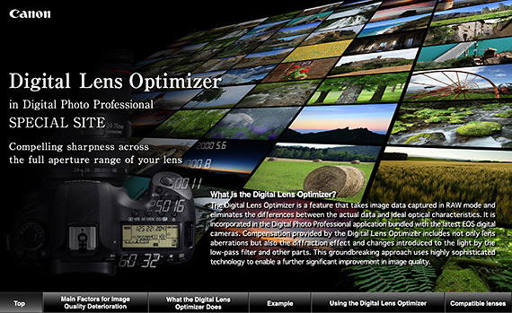 The Digital Lens Optimizer is a feature that takes image data captured in RAW mode and eliminates the differences between the actual data and ideal optical characteristics. It is incorporated in the Digital Photo Professional application bundled with the latest EOS digital cameras. Compensation provided by the Digital Lens Optimizer includes not only lens aberrations but also the diffraction effect and changes introduced to the light by the low-pass filter and other parts. This groundbreaking approach uses highly sophisticated technology to enable a further significant improvement in image quality.