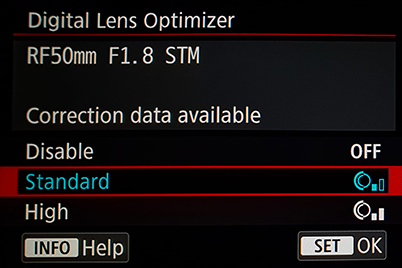 Starting from the EOS R5 and EOS R6, a new ‘High’ setting was included on the DLO, allowing professional users to apply the level of correction that they desired.