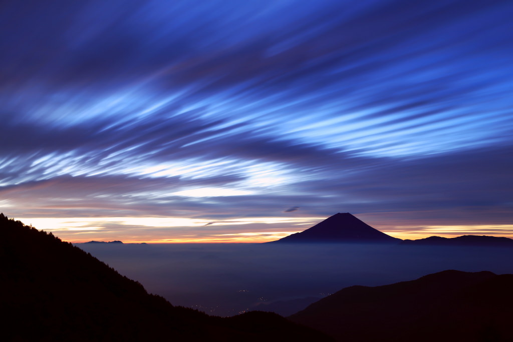 "The time before sunrise is a period of time during which the human eye is unable to fully capture what it sees, but reveals a world of stunning colours on the camera’s LCD screen. When using long exposure, you can capture the movement of clouds high up in the sky and the flow of the sea of clouds, creating a dynamic image that can easily be turned into a photo with a dreamy feel. Even though you are taking still images, you can make the clouds appear as if they are moving."