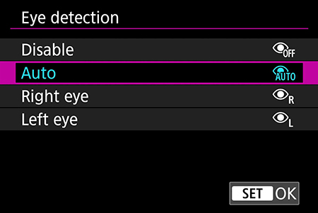 By default, Eye Detection AF is set to “Auto”, which means it prioritises the eye that is nearest to the camera. This works well if you and your model are trying out different poses to see what works! However, if you have a specific image in mind that involves the model in a static, specific pose, you might want to set Eye Detection AF to prioritise either the left or right eye.