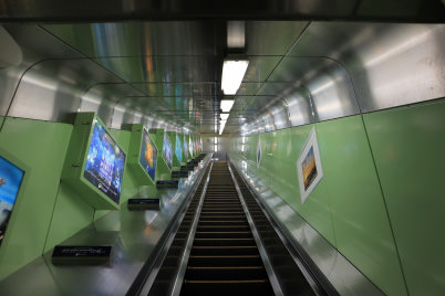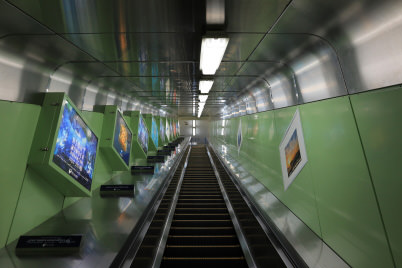 I shot the long, extended escalator at the wide-angle end of 15mm. Since all four sides of the picture clearly converge towards the centre, the viewer’s gaze is naturally directed toward the area of the exit.