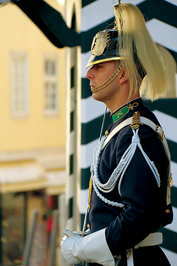 The side portrait of a guard was captured from a slightly distant position. By enlarging the playback image on the LCD monitor, you can tell that the fur on the hat and the epaulet on the uniform are reproduced in fine detail.