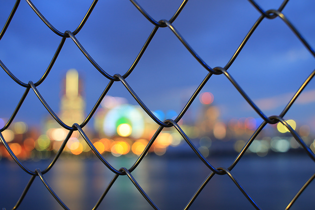 Dream-like scenery unfolds on the other side of the wire mesh fence