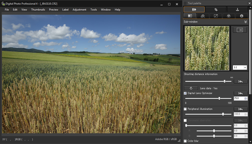 With the Digital Lens Optimizer featured in the Digital Photo Professional software it is possible to minutely correct lens aberrations and diffraction, which are the causes of deterioration in image quality. It offers a comprehensive solution to address aberrations that cannot be eliminated with in-camera correction. You can adjust the level of effect to obtain the intended image quality. The Digital Lens Optimizer is a highly versatile feature that is compatible with all the cameras in the EOS series.