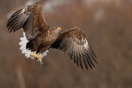 I captured the eagle catching a fish and flying off using burst mode and 61-point Auto Selection AF. My target might have been large but because it was moving at high speed, I had to concentrate intently on keeping it in the frame. All that was left after that was to trust the AF.