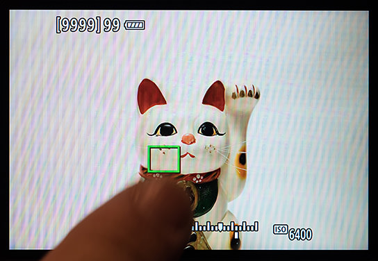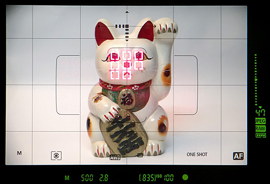 Superimposed AF point lights up in red when focus is established, easing identification at dimly-lit places