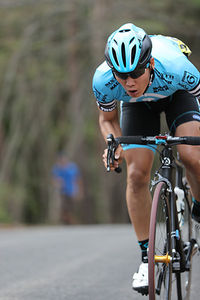 Illustrated in the examples below is a racer going at full throttle down a straight slope in a bicycle road race. He was probably travelling at a speed that was as fast as 60km/h. Here, I captured the subject with AI Servo AF as well as a continuous shooting speed of 14 fps. The camera was able to capture 16 shots in slightly more than a second’s time. It was also able to track the subject and maintain the focus during the process. The AF area I selected was Large Zone AF (Center ).
