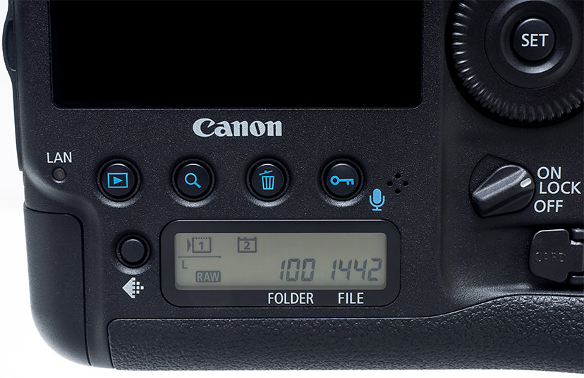 The shutter sound is also relatively quieter than the EOS-1D X during continuous shooting. Despite the high speed, vibration that can be felt through the hand holding the camera is minimal. The speed of writing to a CFast 2.0 card during RAW+JPEG simultaneous recording is amazingly fast. If you are only writing in the JPEG Large format, you can keep releasing the shutter with no disruption until the capacity of the memory card is full.