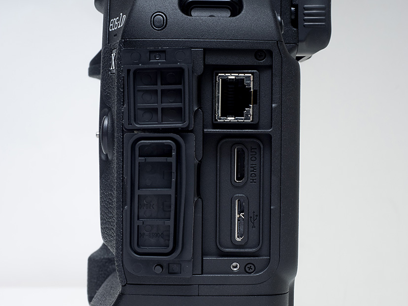 The different interfaces on the camera – Ethernet RJ-45 terminal (IEEE 802.3u), HDMI mini OUT terminal and USB 3.0-compatible digital terminal (SuperSpeed USB Micro B).