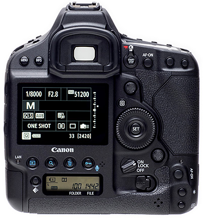 The LCD monitor adopted is a large-sized and wide-angle 3.2-inch Clear View LCD II monitor with a high definition of approximately 1.62 million dots. It is also the first EOS-1D model to be equipped with a touch-sensitive rear LCD monitor. However, the touch screen function can only be used to move the AF point and enlarge the display during Live View shooting, or to move the AF point to another position within the AF area while in the [FlexiZone – Single] AF mode. It does not function as a touch shutter.