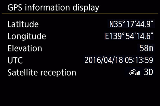 The built-in GPS antenna is compatible with three types of systems, namely GPS satellites (USA), GLONASS satellites (Russia) and Japan’s Quasi-Zenith Satellite System (QZSS) MICHIBIKI. Highly-precise positional information can be obtained by capturing multiple signals from these satellites, which is then written into the image captured in the Exif format. (You can also choose to disable the setting for obtaining positional information.)