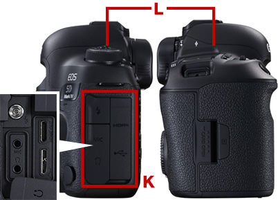 The terminal cover is now split into four sections (K) for better dust- and water-resistance. In addition, a separate part is adopted for the cover of the pentaprism (L), while the line of the edge that connects the pentaprism and top cover is also altered to make the entire body appear more rounded.