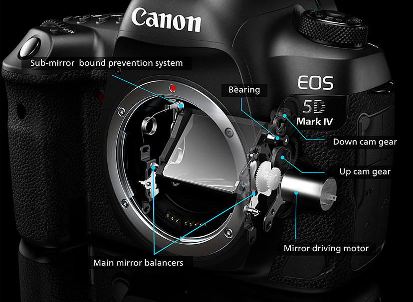 Kojima: From a mechanical point of view, a major contributing factor would be the revamped mirror vibration control system. While both the EOS 5DS and EOS 5DS R make use of a similar system, we have made further enhancements on the EOS 5D Mark IV. Specifically, we revamped the mechanism to stop the mirror from vibrating for a short period of time, and this allowed us to increase the frame rate.