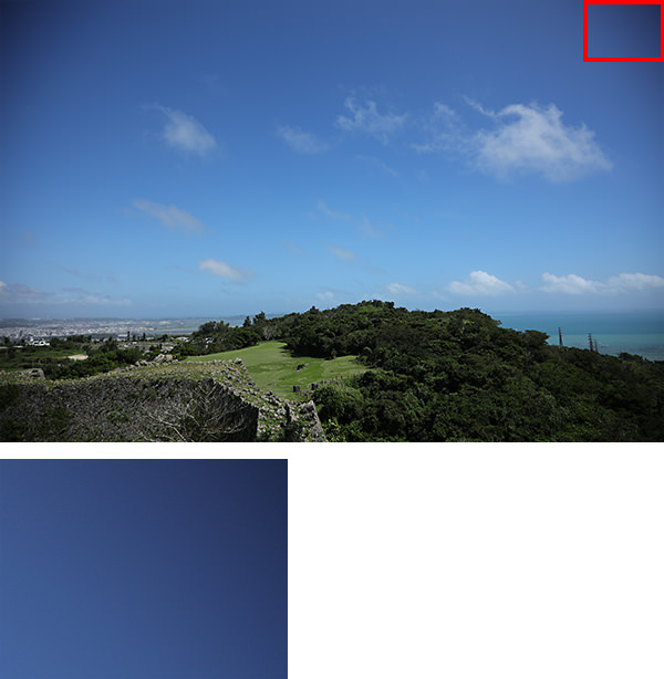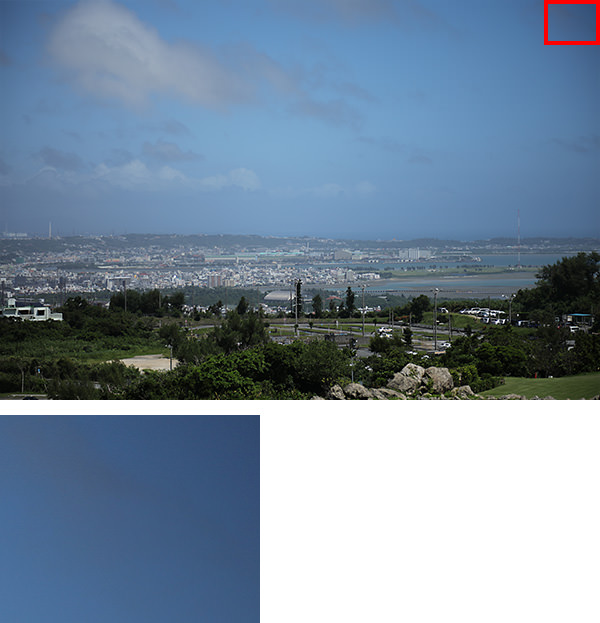 The peripheral illumination correction function corrects peripheral light fall-off through the use of image post-processing technology, brightening the image corners without the need for you to change the aperture setting. The examples below show how much of a difference this function can achieve—corrected images have corner-to corner clarity and brightness throughout the entire focal range.