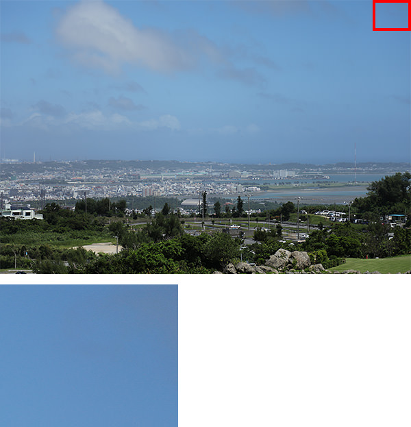 Peripheral light fall-off is still visible in images shot at telephoto range, even though this may not be as significant as what you see in wide angle images. Here, we once again observe the discernable effects of the peripheral illumination correction function—it is as though light was directed at the four corners of the image. This is one useful function for capturing images of birds and aeroplanes against the sky.