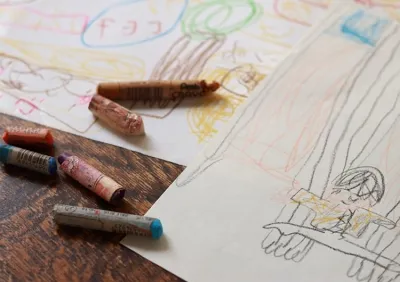 I shot my child’s old drawing along with shortened crayons that show signs of frequent use. In order to portray a soft feel, I shot with a little bit of backlight, and searched for a suitable angle while checking the result on Live View, making sure that the drawing would not be masked by the reflection of light.