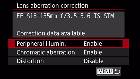 Furuya: By default, the EOS 80D comes with correction data for 30 lenses. If the data for the lens you are using is not included, you can register it using EOS Utility. The camera is capable of storing data for up to 40 lenses. For lenses that come with built-in lens aberration correction data, correction is possible without the need to register the lens using EOS Utility.