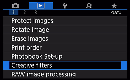 If an image has already been taken, the Creative filters can be set from the Playback menu. You can take your time to choose an effect that suits the photo from among the 7 types of effects available.