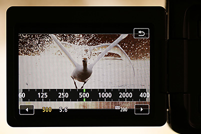 As the control dial has some resistance when turning, operating it during movie shooting can lead to camera shake. A capactive touch screen helps keep vibrations to a minimum. A good idea would be to master the dial operations steadily and speedily before shooting, and then use the touch screen when shooting. Operations free of camera shake are possible even with a 1600 mm telephoto lens