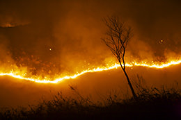 A handheld shot of fire on a burning field that was closing in. It was impossible to use a tripod under such a situation. I needed to take a quick shot and leave before I got trapped in the fire.