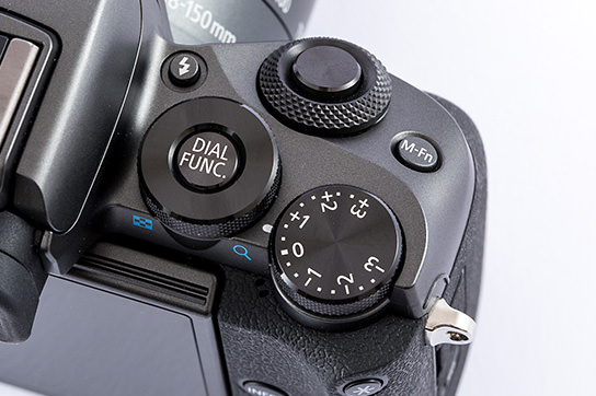 There are more buttons and dials at the top of the body, which will appeal to users who love their operational controls. Those uncertain about how they will navigate the controls may rest assured that the layout is well-balanced with enhanced operability. Located on the right of the top surface are the shutter button, Main Dial, the Exposure compensation dial and the Multi-function button. Also noteworthy is the newly-added Dial Function button and the Quick Control Dial. Most of the settings required for shooting can be adjusted simply using controls in this area. The Mode Dial has been relocated to the left side, and each of the dials is knurled for smooth operation with fingers.
