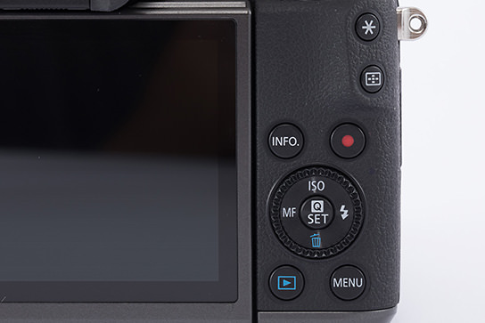The buttons on the right side at the back are arranged in a manner that is similar to the layout of the EOS DSLR models, so any EOS user would find it easy to operate.