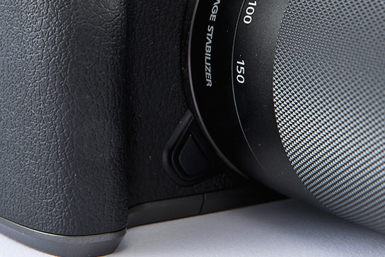 Also worth mentioning is a newly-introduced button on the front to the left of the lens mount. This button is placed exactly at the same location as the Depth-of-field preview button on the EOS DSLR cameras. This button functions as the Touch & Drag AF switching button by default, but it can be customised. I personally use this button frequently, and my favourite way of using is to assign it with the function of switching the AF mode between ONE SHOT and SERVO.