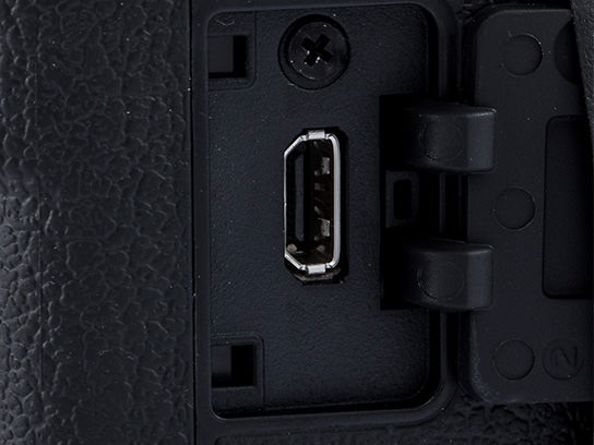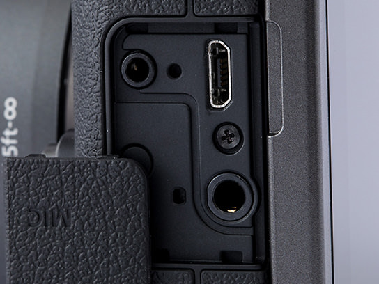 The terminals are located on both sides of the body, with the one for Type D HDMI-micro OUT on the right, and those for Micro-USB, external microphone IN (3.5mm stereo mini) and a remote switch for shutter release (E3 terminal) on the left. The remote switch terminal is a first for the EOS M series and comes in handy for those who often make use of a tripod for shooting. The terminal supports the Remote Switch RS-60E3, which can also be used with the EOS 750D and other models.