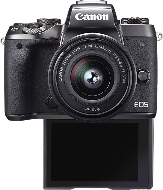 As the first camera in the EOS M-series to feature a 2.36 million-dot high-definition built-in EVF, the EOS M5 boasts of a body design that is very similar to that of DSLR cameras. Slightly bigger than the EOS M3, its rear LCD monitor, tiltable upwards and downwards, is larger than before, at 3.2-inches with approximately 1.62 million-dots of effective pixels. Its structure is just right even for self-portraits, and from the easy-to-hold grip and increase in buttons and controls, it is apparent that the camera has been designed with a seamless shooting experience in mind.