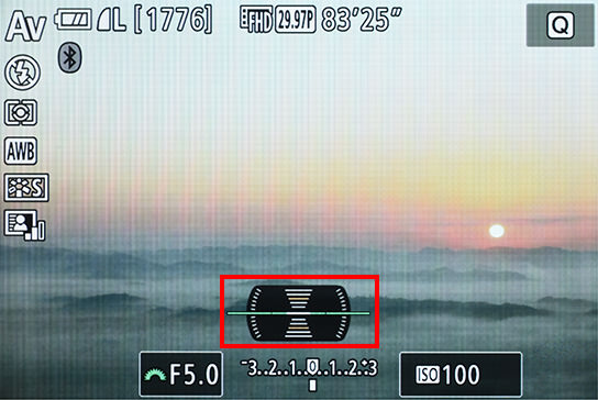 It is possible to correct the horizon after shooting. However, this involves cropping away the image peripheries, which could ruin the image you have painstakingly composed. Therefore, I recommend checking the horizon properly for your shoot. If it is difficult to see your subject while the electronic level is displayed, you can use the INFO button to toggle the display on and off.