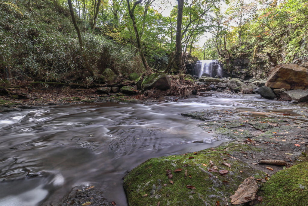 By taking the shot with the boundary between the ground and waterfall aligned with the lower grid line, it became a Rule of Thirds composition. It is clear that the waterfall is the primary subject so it is easy to convey the intention of the photographer.