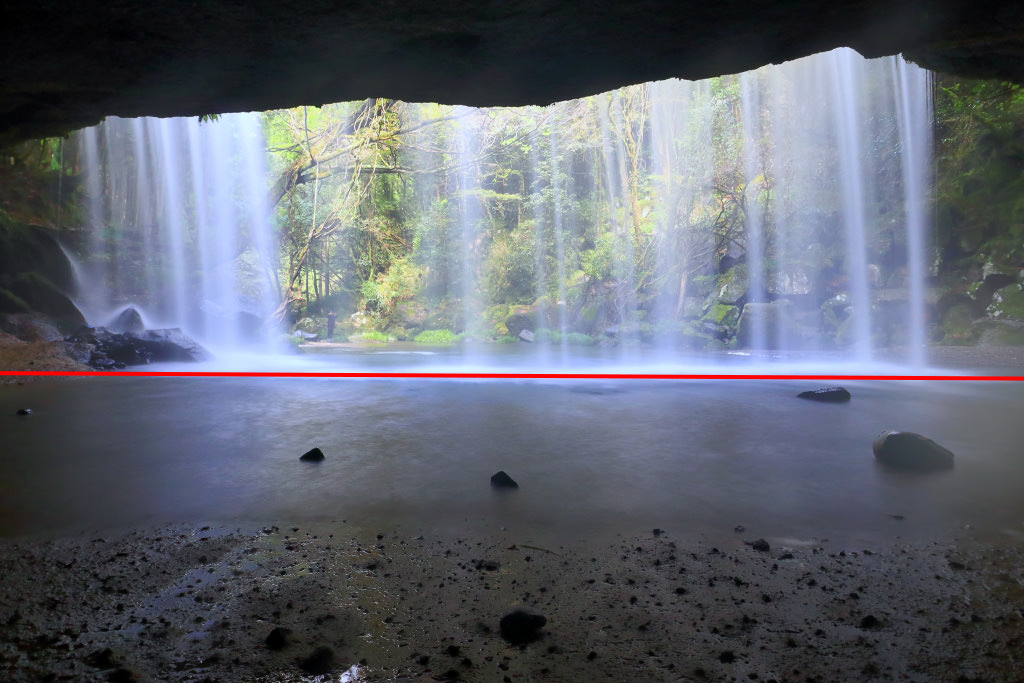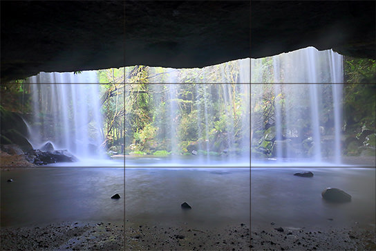 The Rule of Thirds is one of the most well-known composition techniques for photography. While there are scenes that are difficult to gauge by eye, using the grid display on the EOS M5 makes it a cinch to create the Rule of Thirds composition. Although the photo below is of a scene that might make one wonder where to place the ground, waterfall, and cavern ceiling in the frame, I used the Rule of Thirds, and placed the ground and remaining elements using a 1:2 ratio to take a well-balanced shot.