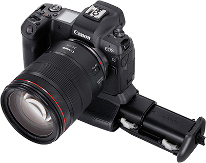 Other things to note: The EOS R has an optional battery grip, Battery Grip BG-E22 (shown above), that supports 2 batteries, bringing up the total number of possible shots to about 740. This also provides a more comfortable hold during vertical shooting—useful for genres such as portrait photography.