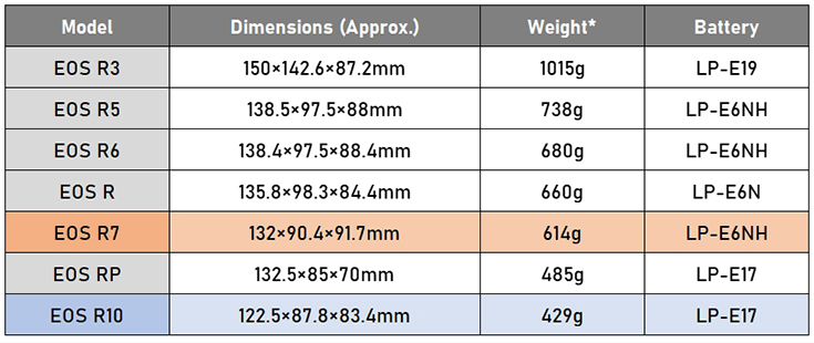 One of the highlights of the EOS R series is its adoption of the mirrorless camera system, which enables smaller, lighter camera bodies. The EOS R10 takes it further, leveraging on the smaller APS-C sensor and optimising materials and design to further reduce size and weight. As a result, the EOS R10 is currently the lightest camera in the EOS R series, weighing approximately 429g**—less than a 500ml plastic bottle of mineral water.