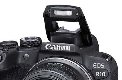 The pop-up flash has a guide number of approximately 6 (ISO 100, metres). The EOS R10’s strong low light abilities mean that you can take beautiful images even without a flash in dim lighting situations. However, the built-in flash gives you more creative possibilities!