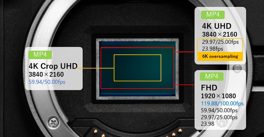 The EOS R50 V’s adoption of the industry-standard XF-AVC S and XF-HEVC S recording formats supports professional workflows that the conventional DCF-standard MP4 format cannot handle. Besides high-quality 4K 29.97 /25.00 / 23.98 fps videos oversampled from 6K, it can also record cropped 4K 59.94 / 50.00 fps videos. YCC 4:2:2 10-bit recording is available in all formats, providing richer tones and gradations that will delight detail-oriented content creators.