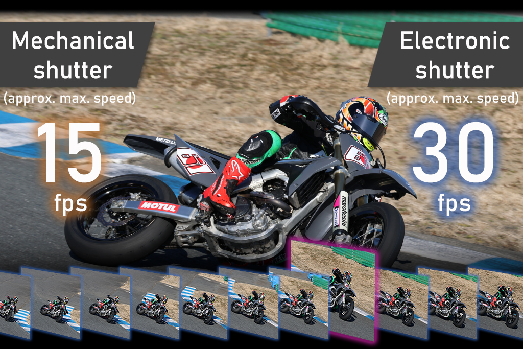 In electronic shutter mode, the EOS R7 shoots at up to 30 fps with AF/AE tracking—on par with the professional class EOS R32.