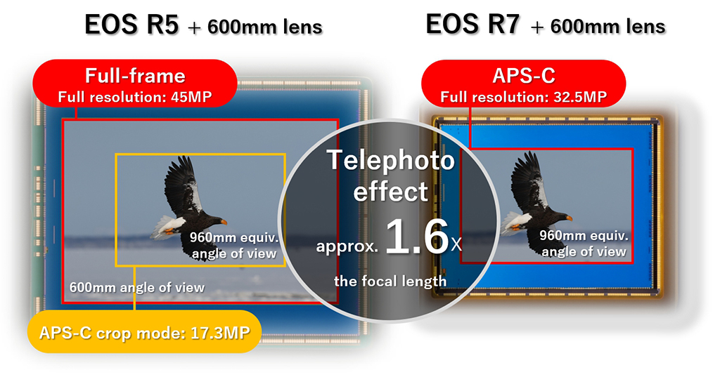 Visibly smaller than 35mm full-frame image sensors, APS-C image sensors offer strong advantages for telephoto shooting: they give you a field of view that is 1.6x longer than the focal length indicated on the lens. While full-frame EOS R cameras have a 1.6x crop mode that achieves the same effect by recording with only part of the image sensor (for example, the size of an APS-C crop image shot on the 45-megapixel EOS R5 is around 17.3 megapixels), an APS-C camera uses the full resolution of the image sensor. An automatically extended focal length, with high-resolution 32.5-megapixel images—it’s a delight for sports and wildlife photographers, and anyone who always seeks to get closer.
