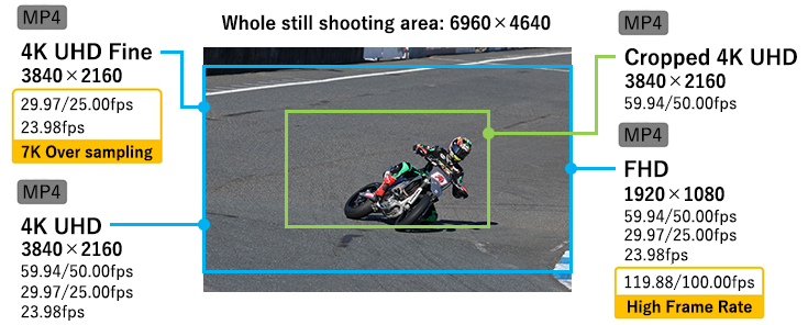 For situations where you need additional telephoto effect, the 4K UHD crop mode, in combination with the inherent 1.6x APS-C sensor crop, results in a 1.8x close-up effect.