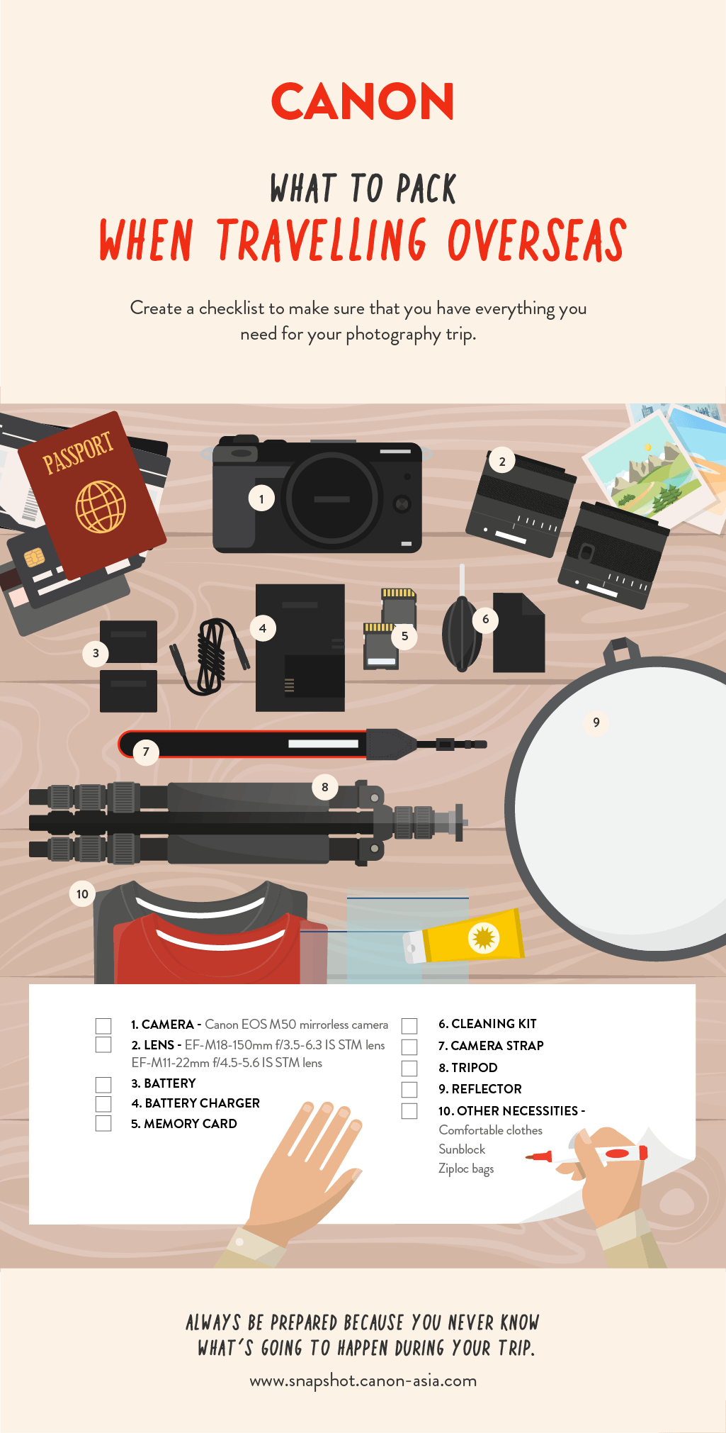 We often know what clothes to pack and which toiletries to bring when travelling overseas, but what about our camera equipment and accessories? Let us help with this simple checklist to make sure that you have everything you need for your photography adventure!