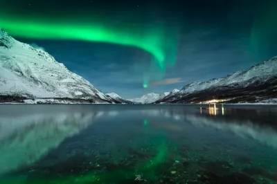 Aurora reflection, Laksvatn, Norway