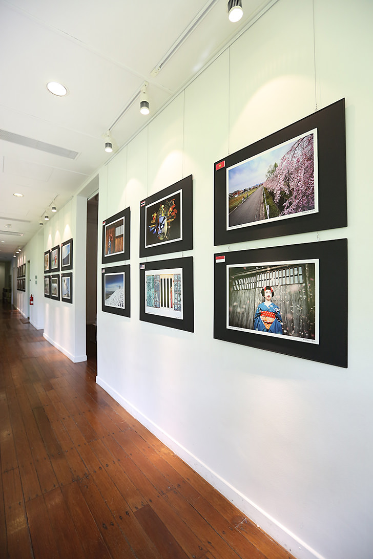 Hallway at the Japanese Creative Centre displaying the photographs taken by the participants of the Canon Photo Clinic 2016