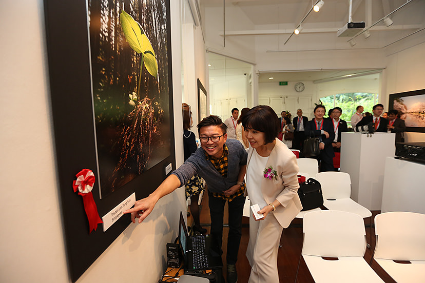 Tristan Lim proudly showing his award-winning photograph to Ms. Noriko Gunji, President and CEO of Canon Singapore Pte. Ltd.