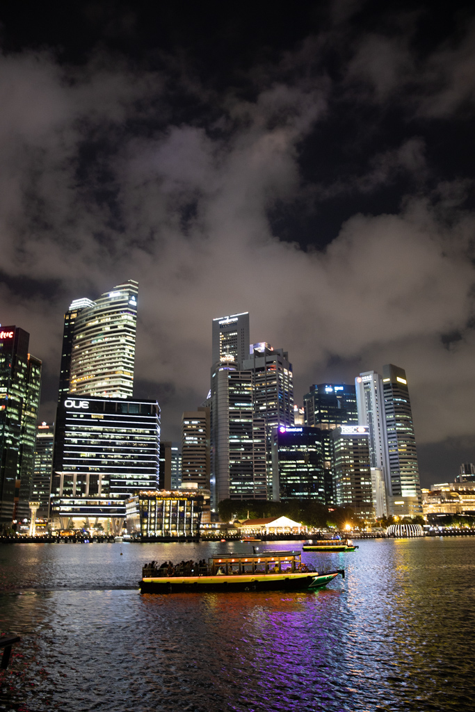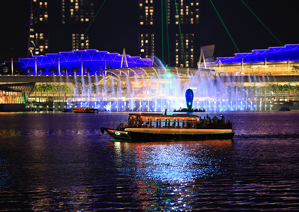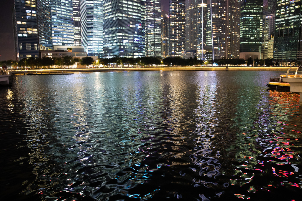 It was about eight in the evening and just as the sky slid from deep purple to a gentle black, a dazzling display of light came alive near the waters. Accompanied by fountain jets and visual projectors, the sky lit up in various colours. Maintaining an aperture of f/2.0 to allow sufficient light into the camera sensor, coupled with lens great for low-light, we only needed to turn up the ISO to 1600 to capture a shot of the light show.