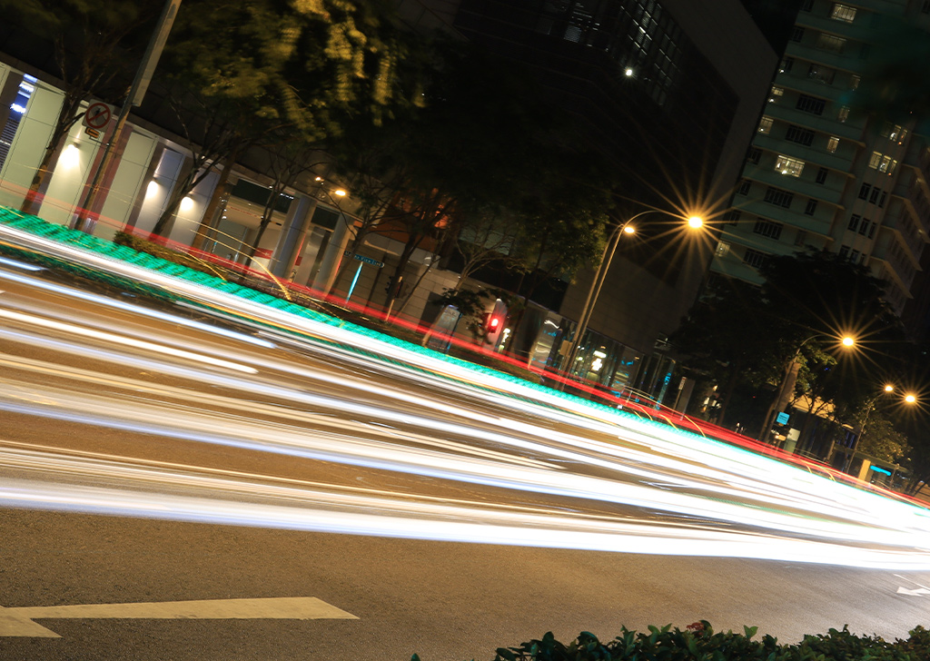As we approached a road, we could hear the roaring of the cars as they sped by. We mounted our camera onto a tripod and positioned the set-up in a diagonal angle facing the incoming traffic. Using a long exposure of about 13 seconds coupled with a low ISO of just 100, we captured streaks of light from the passing vehicles. The result was almost an emulation from a scene in a sci-fi movie.