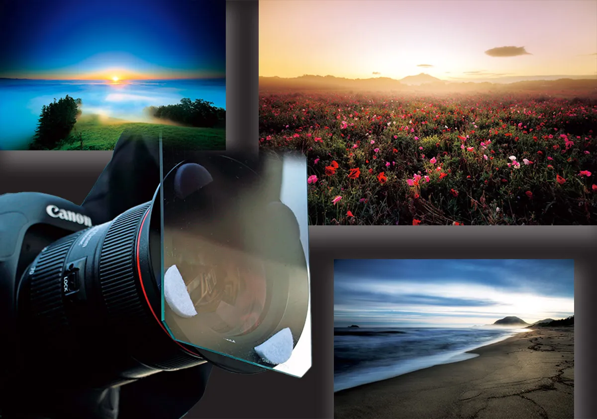 Lens filters provide a quick way to correct brightness, add effects, and get amazing images on the spot. Learn about the techniques behind the following three images, which were shot with a graduated neutral density (GND) filter combined with another type of filter. (Reported by: Munetaka Hiroshima, Yoshiki Fujiwara, Digital Camera Magazine)