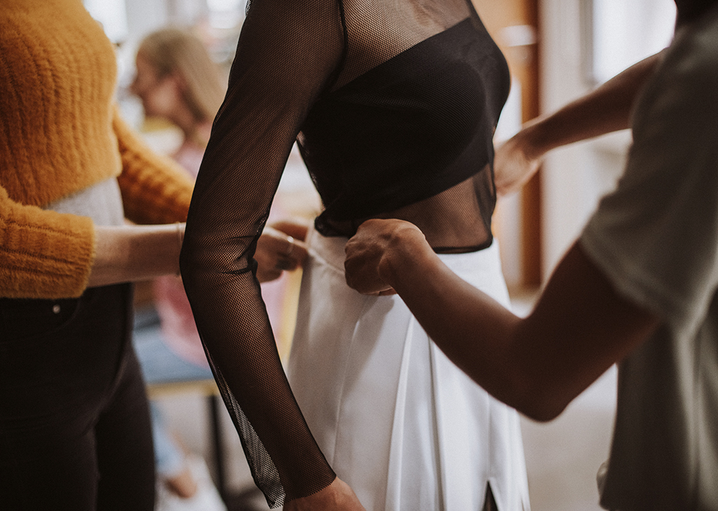 A seasoned fashion stylist will usually take care of this but if your team lacks one, then you will need to prepare for fit issues. For clothing, a simple set of needles, thread and strong pegs will often be enough to tighten any loose areas. Remember to position the pegs so they are hidden from the final output such as clamping the clothes from the back. It is best to craft the wardrobe around the size of your model (or slightly bigger), as it is easier to fit bigger clothing onto a smaller body as opposed to forcing the smaller clothing onto the wrong body size.
