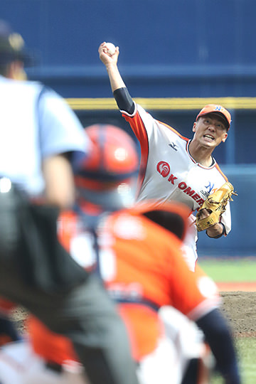A pitcher pitching with all his might was captured with AF point expansion. I overlapped the AF point with the subject's face to include the umpire and catcher as part of the foreground blur.